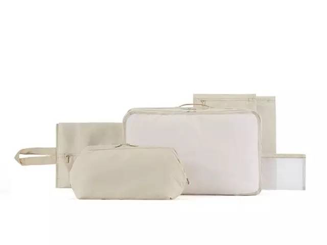 全套共有六件,最外面的是一個(gè)洗漱包,里面還有一個(gè)雙層衣物袋、兩個(gè)內(nèi)衣袋、一個(gè)鞋袋、一個(gè)網(wǎng)袋,每一個(gè)都非常實(shí)用。