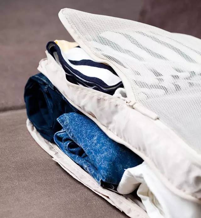 衣物袋是雙層的,可以把褲子和上衣分開裝,一般可以裝2-3條褲子,3-4件T恤。而且,上層是可視型網(wǎng)格設(shè)計(jì),方便看清里面的衣物,找起來(lái)也方便。