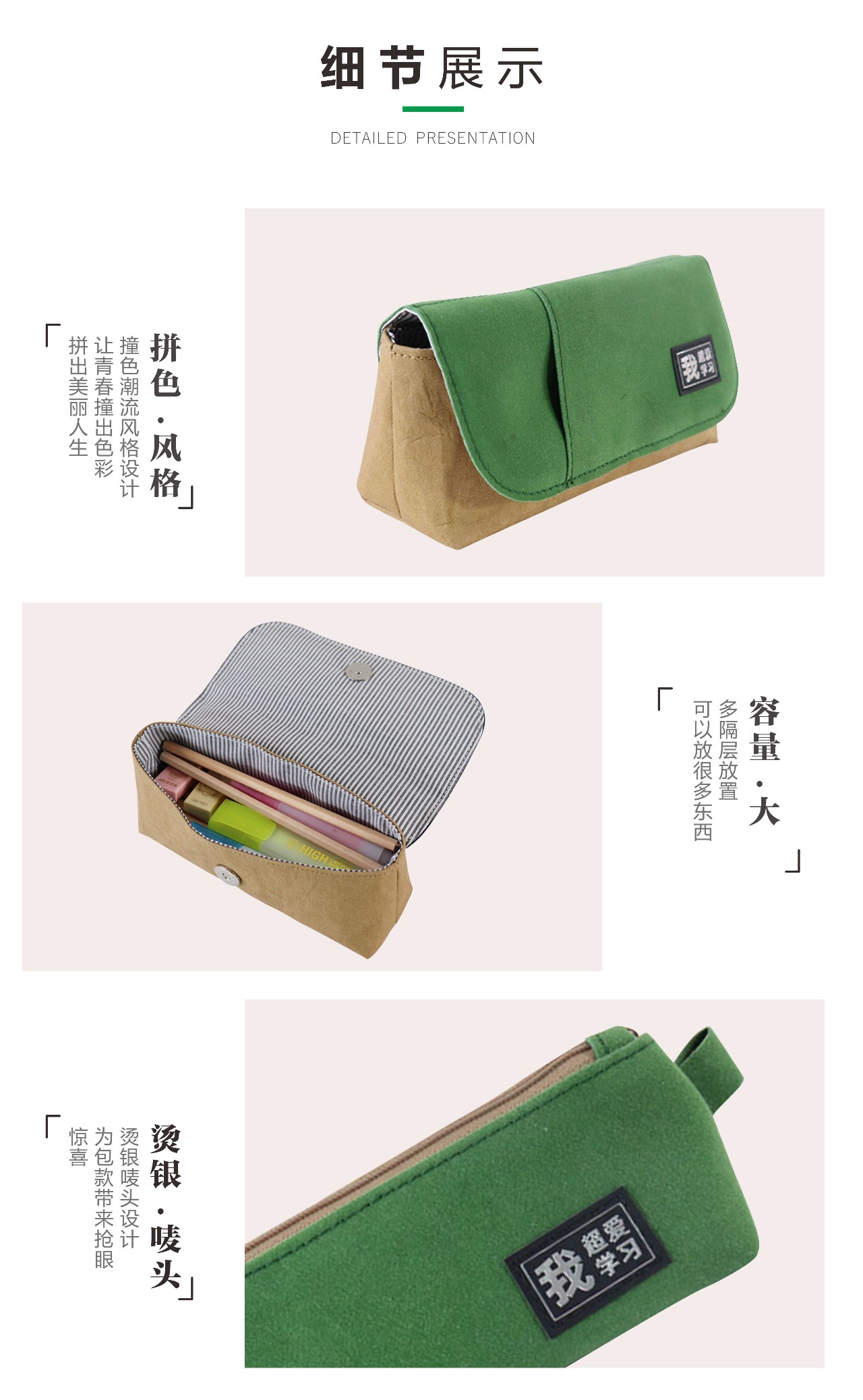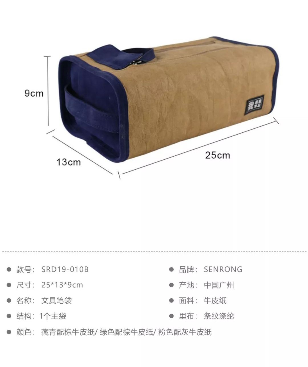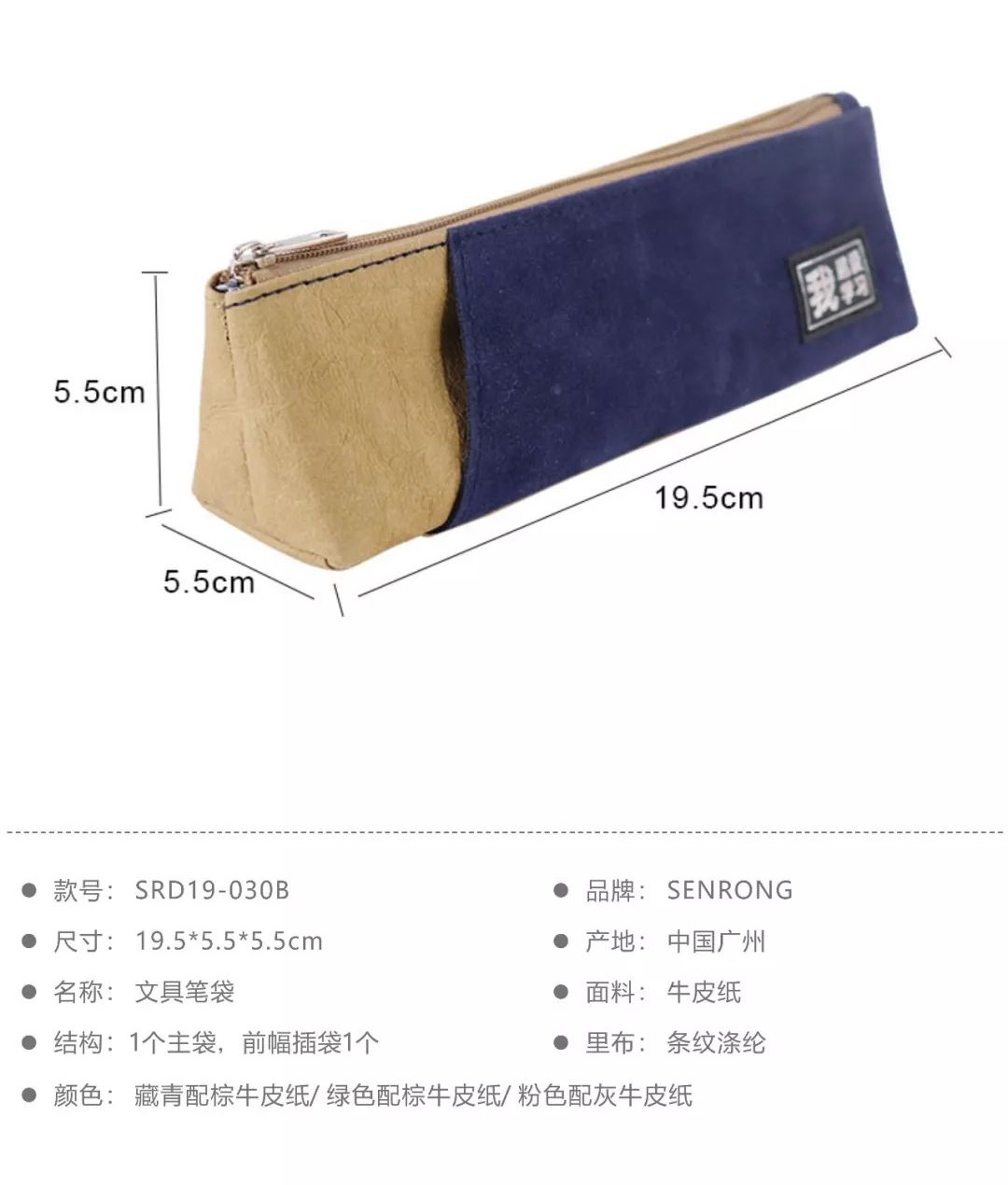 這款紙質(zhì)的筆袋采用水洗牛皮紙